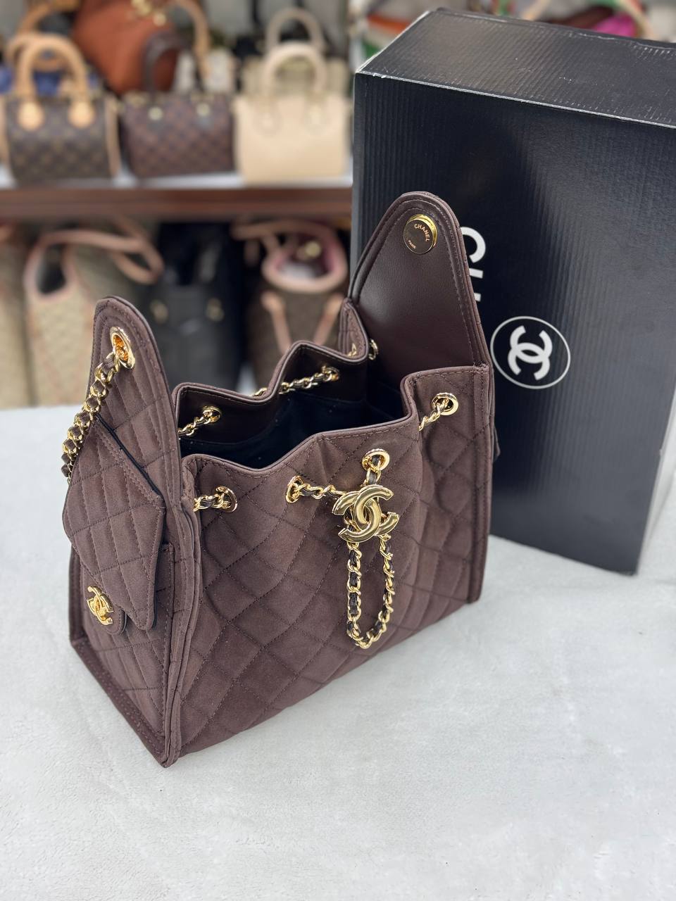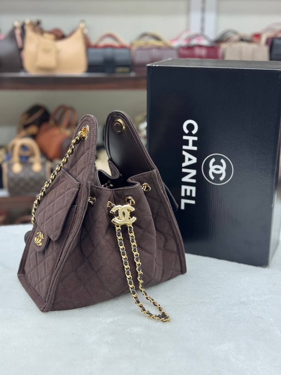 Σανέλ Πουγκί Καφέ Suede
