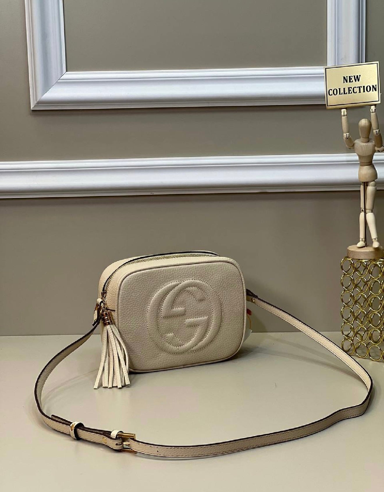Η **Gucci Soho Bag Beige** αποτελεί ένα από τα πιο αγαπημένα και αναγνωρίσιμα σχέδια της Gucci. Κατασκευασμένη από πολυτελές δέρμα, με ανάγλυφο λογότυπο GG στο μπροστινό μέρος και ρυθμιζόμενο ιμάντα ώμου, συνδυάζει τέλεια την πρακτικότητα με τη διακριτική πολυτέλεια.